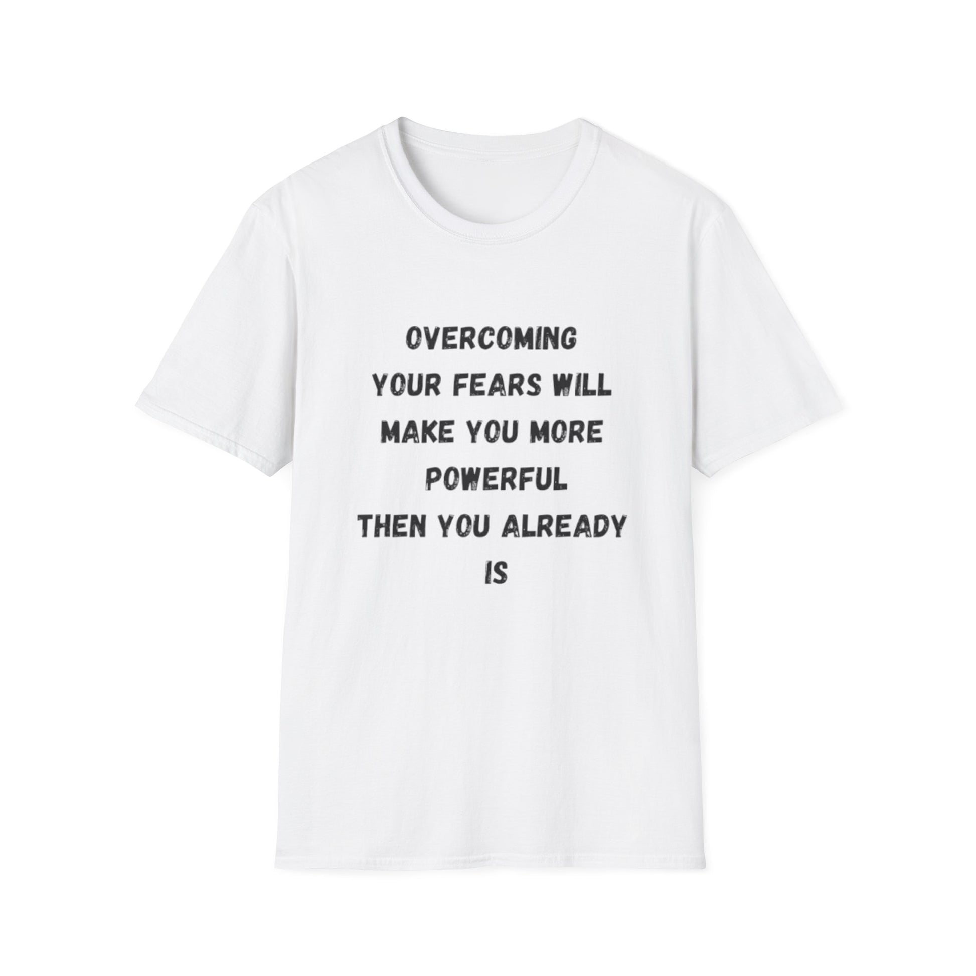 Embrace your individuality and spread positivity with this unisex softstyle t-shirt. The empowering message, "Overcoming your fears will make you more powerful than you already is," inspires confidence and resilience. This versatile tee is perfect for casual outings, workout sessions, or lounging at home. It fits seamlessly into any wardrobe, making it an ideal gift for friends or loved ones who appreciate motivational quotes. Perfect for occasions like birthdays, graduations, or just as a reminder to tackle life's challenges. This t-shirt radiates a casual yet uplifting vibe, perfect for both men and women looking to make a statement.